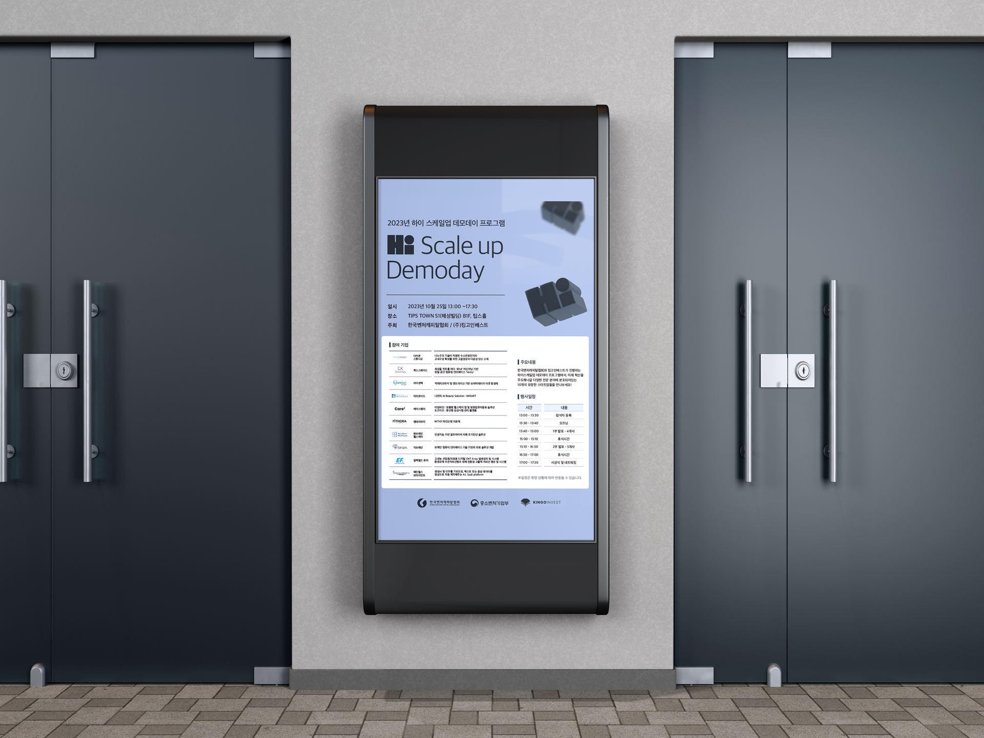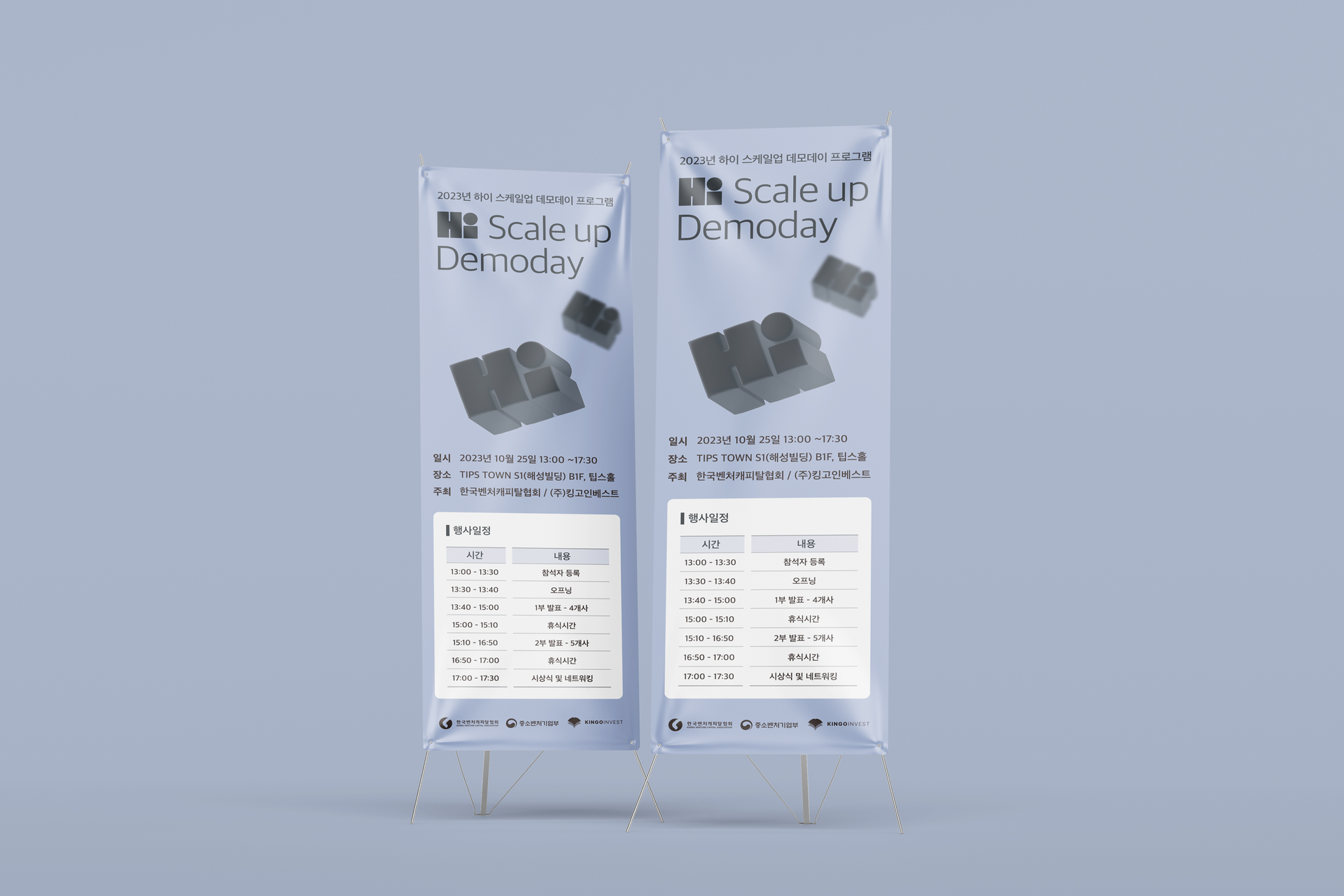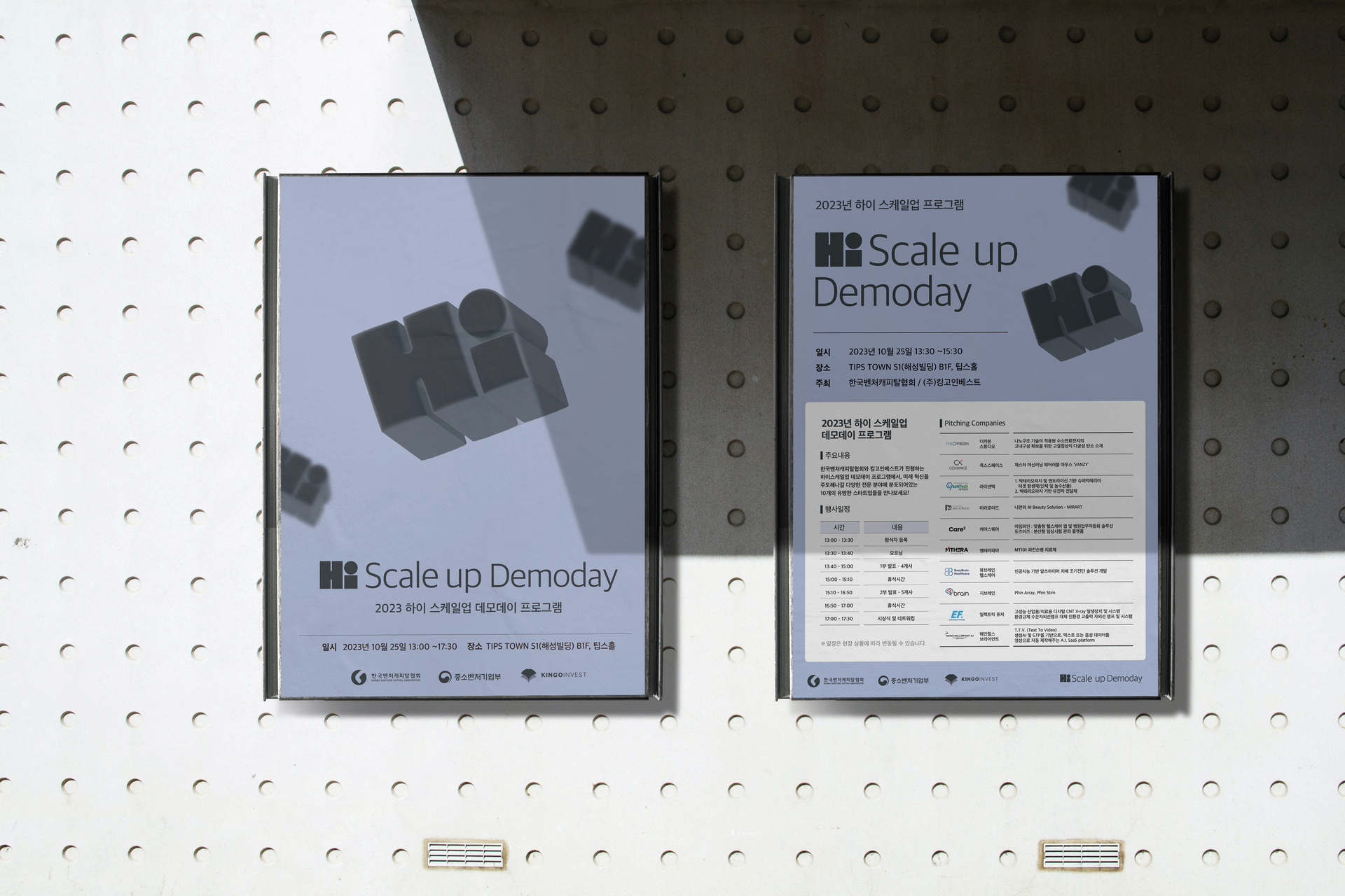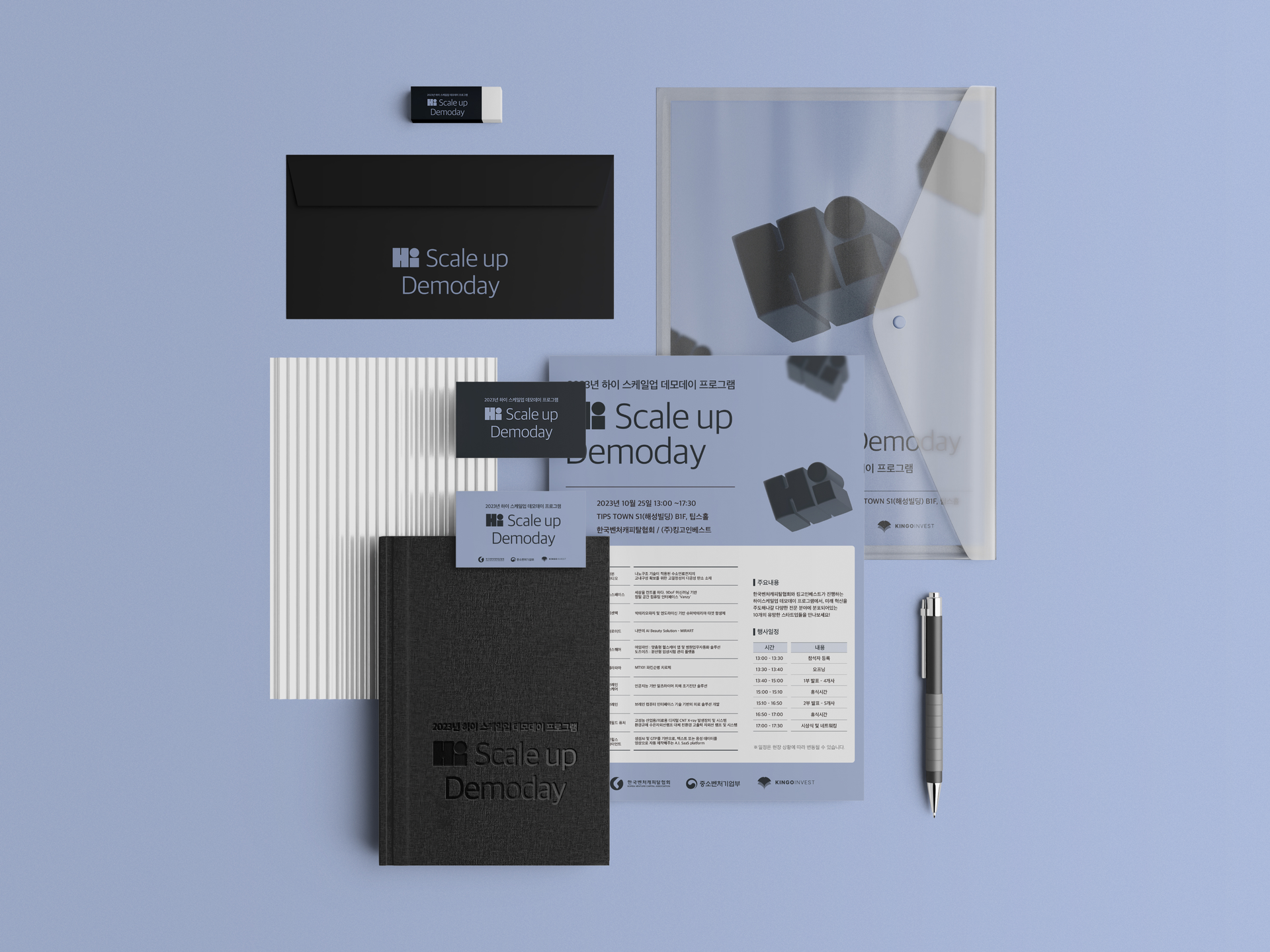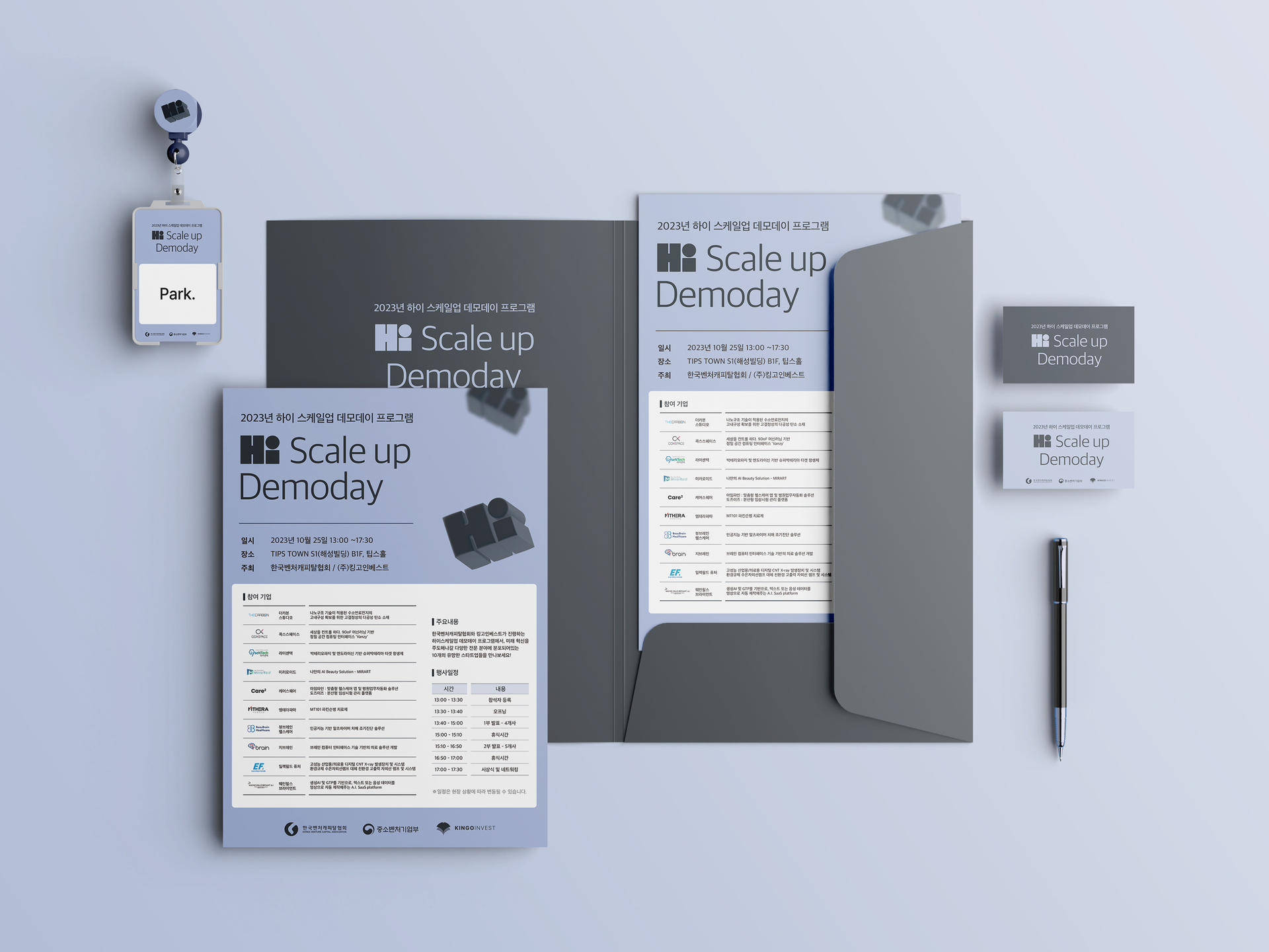 ‘Hi! Scale-Up Demo Day’는 기술과 아이디어, 가능성을 바탕으로 새로운 내일을 만들고자 하는 스타트업 기업들의 발표 행사로, Hi! Scale-Up Demo Day 프로젝트는 행사의 정체성과 분위기를 시각 언어로 정의하고, 다양한 디지털·인쇄 매체에서 명확하고 밝은 인상을 전달하는 브랜드 비주얼을 설계하고자 했습니다.